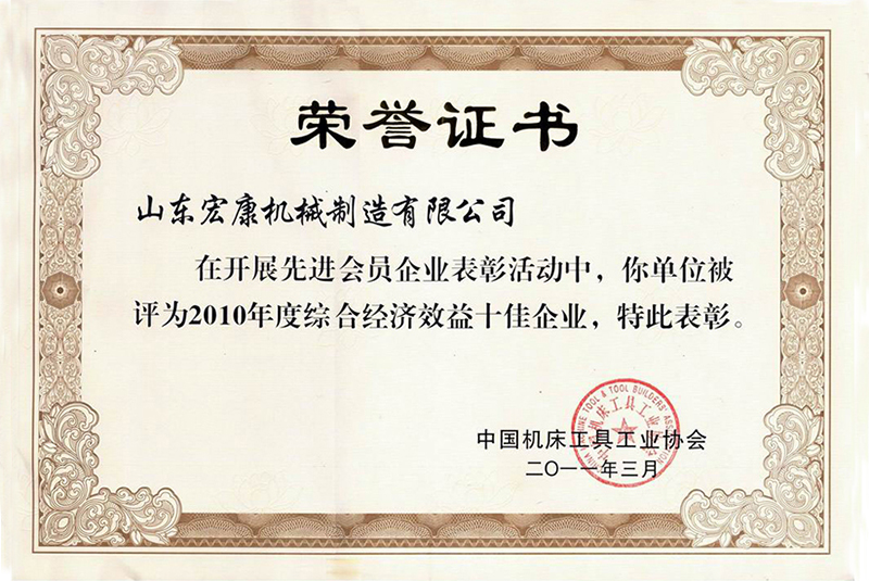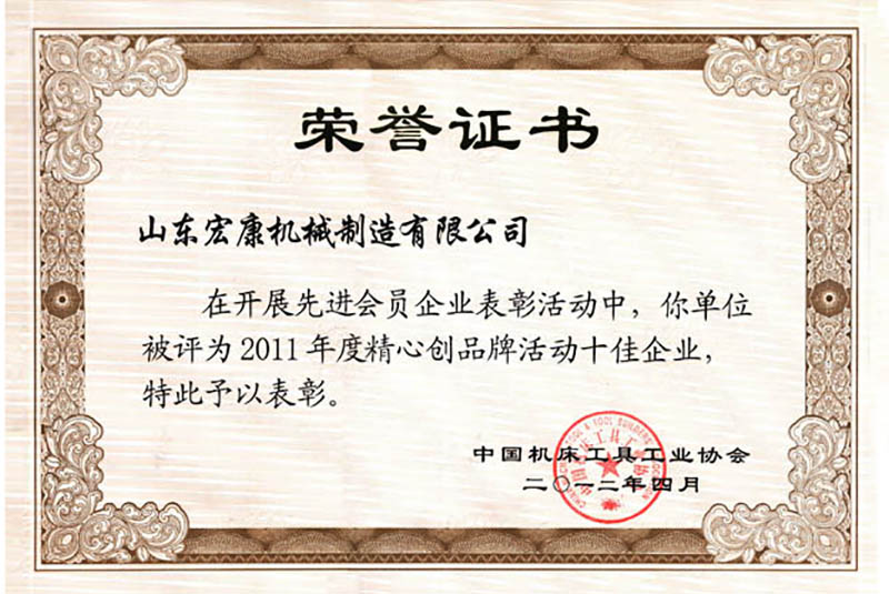 中国机床工具工业协会荣誉证书